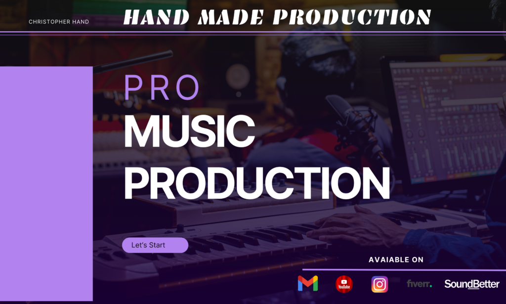 My name is ChristopherHand I specialize in professional music production, mixing, mastering, arrangement, and beatmaking. I've been working with sound for over seven years — both as a producer and an engineer. I collaborate with artists across a wide range of genres, including rap, hip-hop, pop, R&B, electronic, and alternative music. I'm also the founder of HandMadeProduction — my own music venture, through which I manage full-scale projects from concept to final product. It’s a creative space built to deliver high-quality music with a personalized approach tailored to each artist’s vision. In my work, I combine creativity with technical precision — handling everything from vocal tuning and track editing to full track production and mastering. I’ve collaborated with numerous artists and producers, including on international projects developed in the United States. I produce from my own professional studio, which allows me to deliver high-level results — both sonically and artistically. My focus is always on quality, originality, and attention to detail. My goal is to continue growing HandMadeProduction and working with artists who are ready to take their music to the next level — sonically, conceptually, and emotionally.